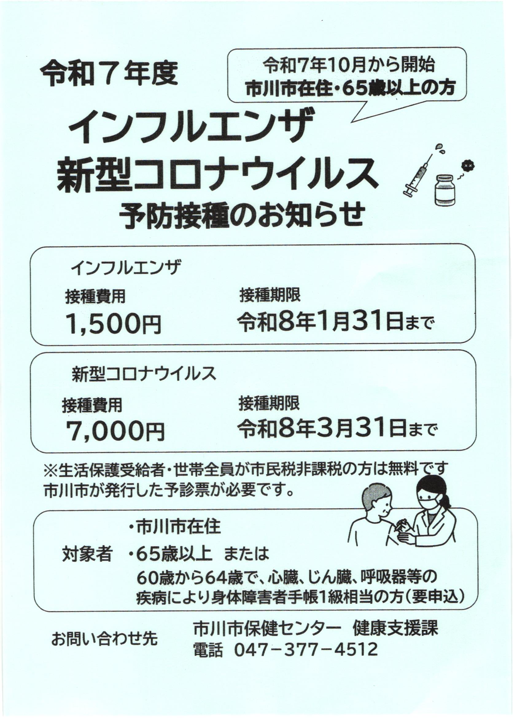 - 令和7年度インフルエンザ・新型コロナウイルス予防接種のお知らせ [2025.09.19更新]